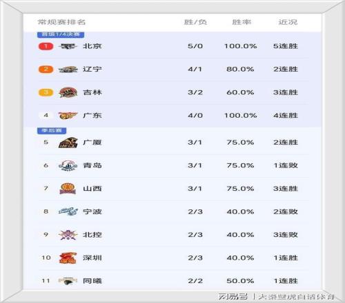 ①、由于第五輪廣東隊和廣州的德比戰(zhàn)仍未開始,北京隊成為聯(lián)盟唯一5連勝球隊,高居排名榜首;