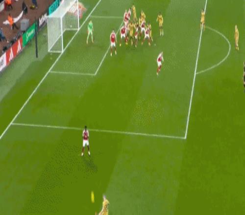 薩卡角球傳中,卡拉菲奧里和廷貝爾連續(xù)攻門被擋出,拉克魯瓦混戰(zhàn)當中自擺烏龍,1-0!
