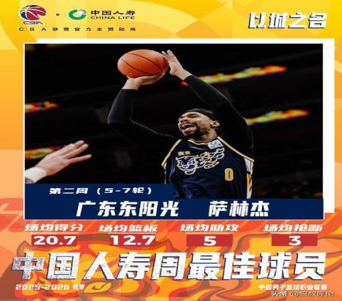 北京時(shí)間12月29日,根據(jù)CBA官方的公示,2025-2026賽季CBA聯(lián)賽常規(guī)賽第二周中國(guó)人壽周最佳球員,分別是薩林杰,以及賀希寧。