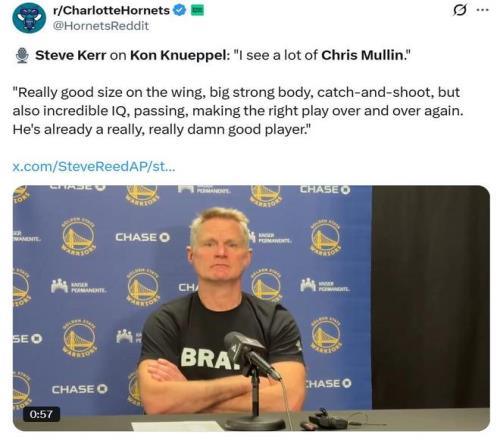 科爾賽后則點(diǎn)評(píng)道:“我在他身上看到了克里斯-穆林的影子(NBA75大巨星之一,被譽(yù)‘上帝的左手’),他作為一名側(cè)翼球員,身材條件非常好,身體很強(qiáng)壯,既能作為空間點(diǎn)接球就投,又擁有極高的籃球智商,可以組織傳球,并且總能做出正確的選擇,總而言之,他已經(jīng)是一名非常優(yōu)秀的球員?!?/p>