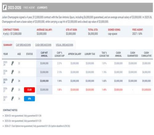 值得一提的是尚帕尼是一位落選秀,他跟馬刺簽下的合同是四年1200萬,他本賽季的年薪是300萬,下賽季他的合同還是300萬,這位24歲的身高2.01米的投手一戰(zhàn)成名了。