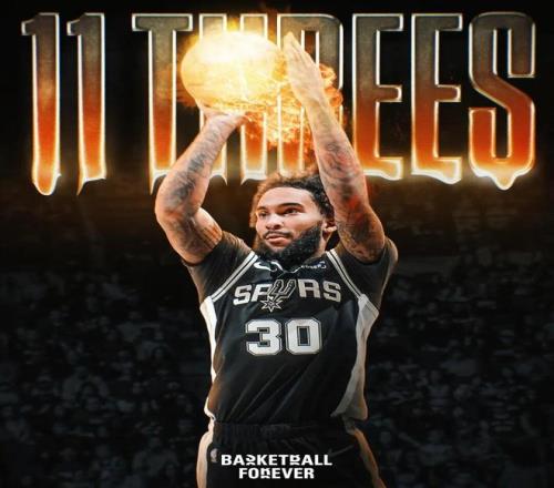 此外,11記三分還打破了馬刺的隊史三分紀(jì)錄,此前的紀(jì)錄是由查克珀森在1997年投進(jìn)的單場9記三分,此外瓦塞爾、文班亞馬、米爾斯、丹尼格林、吉諾比利等人都曾投進(jìn)8記三分。