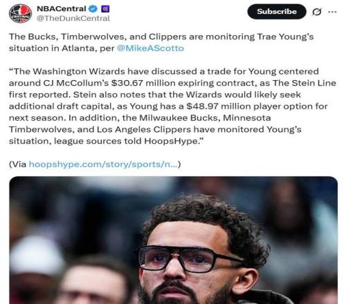 根據(jù)此前名記Stein報道,老鷹隊正在積極兜售特雷楊,并且已經(jīng)和奇才隊圍繞特雷楊與CJ互換的交易框架展開討論。