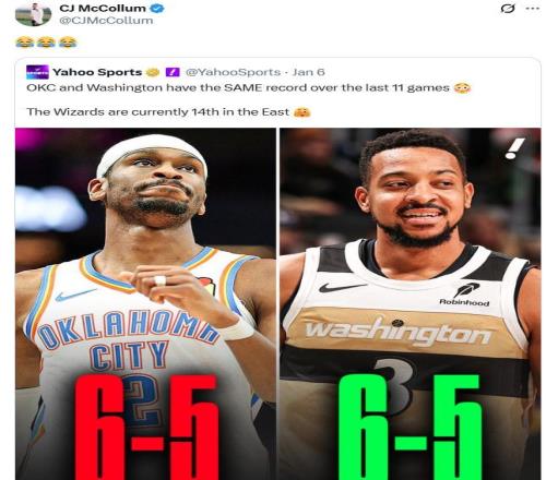 值得一提的是,在本場爆冷擊敗魔術(shù)隊之前,奇才隊后場核心CJ就已經(jīng)發(fā)現(xiàn)球隊?wèi)?zhàn)績追平聯(lián)盟第一雷霆。