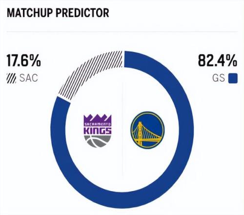 賽前,美媒ESPN對本場比賽進行了勝率預測,勇士隊勝率高達82.4%,一騎絕塵,國王隊勝率則僅有17.6% ,還是不被外界看好。