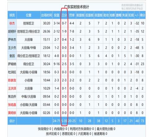 廣東隊之所以會糟糕慘敗,有兩個方面的因素,一個就是球隊三分球命中率太糟糕,全場比賽,廣東隊三分球出手35次,只命中了5球,三分球命中率只有14%,十分慘烈(胡明軒三分球9中1,徐杰7中0,薩林杰4中0)。反觀,上海隊三分球出手35次,但是,他們卻命中了19球,命中率達(dá)到了驚人的54%,在三分球方面,上海隊贏了52分。