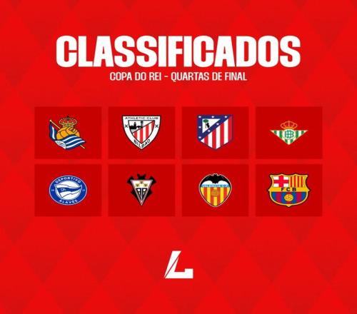 國王杯八強:巴塞羅那、馬德里競技、畢爾巴鄂競技、皇家社會、皇家貝蒂斯、瓦倫西亞、阿拉維斯、阿爾瓦塞特(西乙)