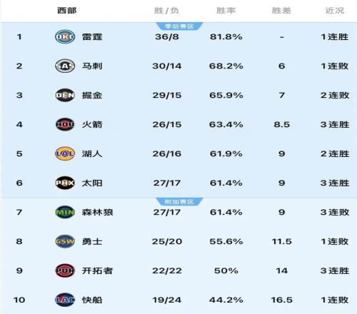 今天比賽開(kāi)啟前,西部局勢(shì)可謂一言難盡