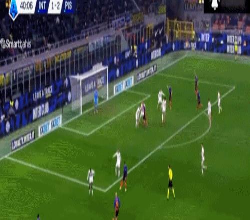 第70分鐘,巴斯托尼左路傳中,奧古斯托禁區(qū)內(nèi)凌空掃射,稍稍高出橫梁,比薩門前風(fēng)聲鶴唳。第82分鐘,博尼斷球策動反擊,小圖拉姆右路傳中,迪馬爾科跟上凌空掃射,皮球擊中立柱入網(wǎng),國米鎖定勝局,4-2!