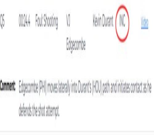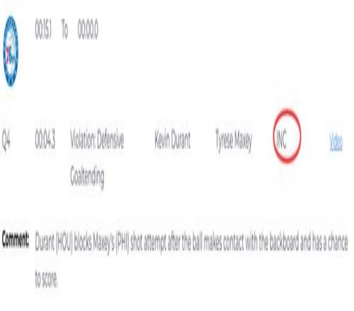 第二次漏判,發(fā)生在距離加時(shí)賽結(jié)束還有24.4秒,76人隊(duì)的埃奇庫(kù)姆在防守杜蘭特的投籃時(shí),橫向移動(dòng)切入杜蘭特的進(jìn)攻路線,并主動(dòng)發(fā)起了身體接觸。這是一次漏吹的投籃犯規(guī),杜蘭特將球打進(jìn),所以火箭本該獲得加罰一球的機(jī)會(huì)。杜蘭特也向裁判攤手表示對(duì)方犯規(guī),但裁判沒(méi)有表示。這次漏判是火箭吃虧,76人獲利。