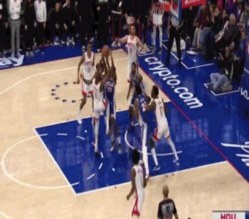 第一次漏判,也是大家第一時(shí)間就看到的干擾球違例。距離第四節(jié)結(jié)束還有4.3秒時(shí),火箭隊(duì)的杜蘭特在76人隊(duì)馬克西的出手籃球打到籃板、仍有入網(wǎng)得分機(jī)會(huì)時(shí),完成了一記封蓋。這是一次漏吹的防守干擾球違例,76人本該得到兩分,很有機(jī)會(huì)在常規(guī)時(shí)段拿下比賽。這次漏判是76人吃虧,火箭獲利。